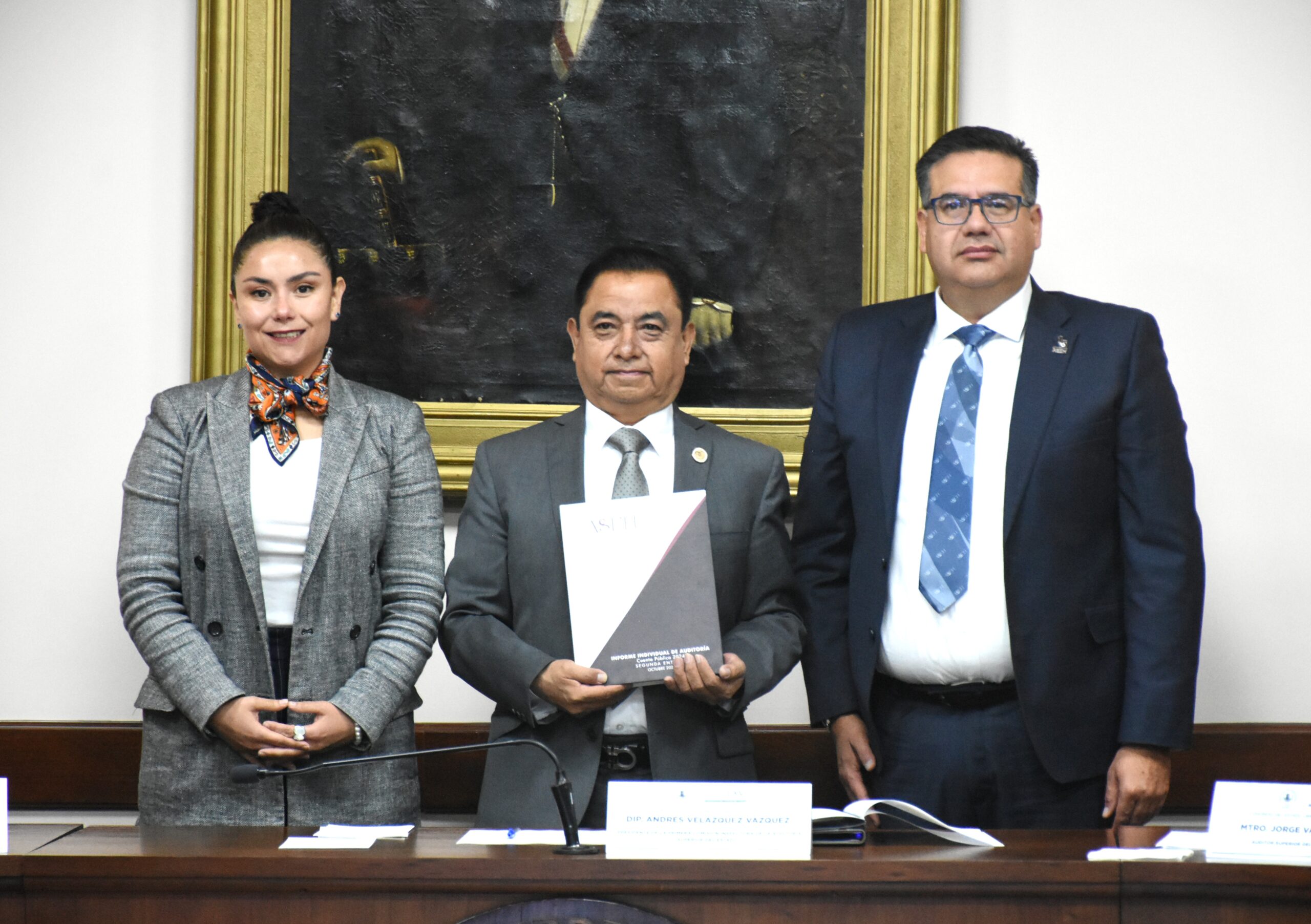 A la entrega también asistieron la diputada Mónica Leanett Reyes Martínez y los diputados Miguel Ángel Moreno Zamora, Avelino Tovar Iglesias, Francisco Javier Téllez Sánchez y Carlos Alejandro Alcántara Carbajal; así como personal del Congreso y de la Auditoría.