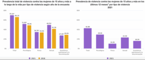 Respecto de 2016, los resultados de 2021 muestran un incremento de 4 puntos porcentuales en la violencia total contra las mujeres a lo largo de la vida.