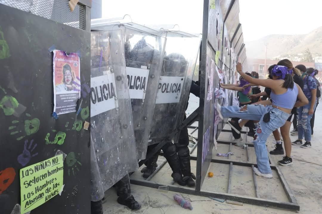 “Las vallas se adquirieron para proteger el patrimonio, no por la mayoría de las mujeres que se manifiestan, que lo hacen de manera pacífica y están en todo su derecho”, puntualizó. Señaló que la medida responde a la presencia de “algunos grupos” que, dijo, aprovechan las movilizaciones para causar daños a inmuebles públicos.