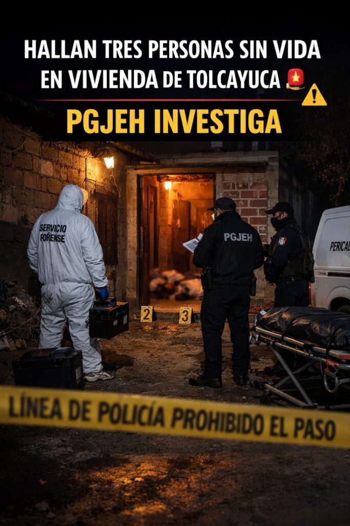 La Procuraduría General de Justicia del Estado de Hidalgo (PGJEH) inició una carpeta de investigación tras el hallazgo de tres personas sin vida al interior de un domicilio ubicado en Tolcayuca.